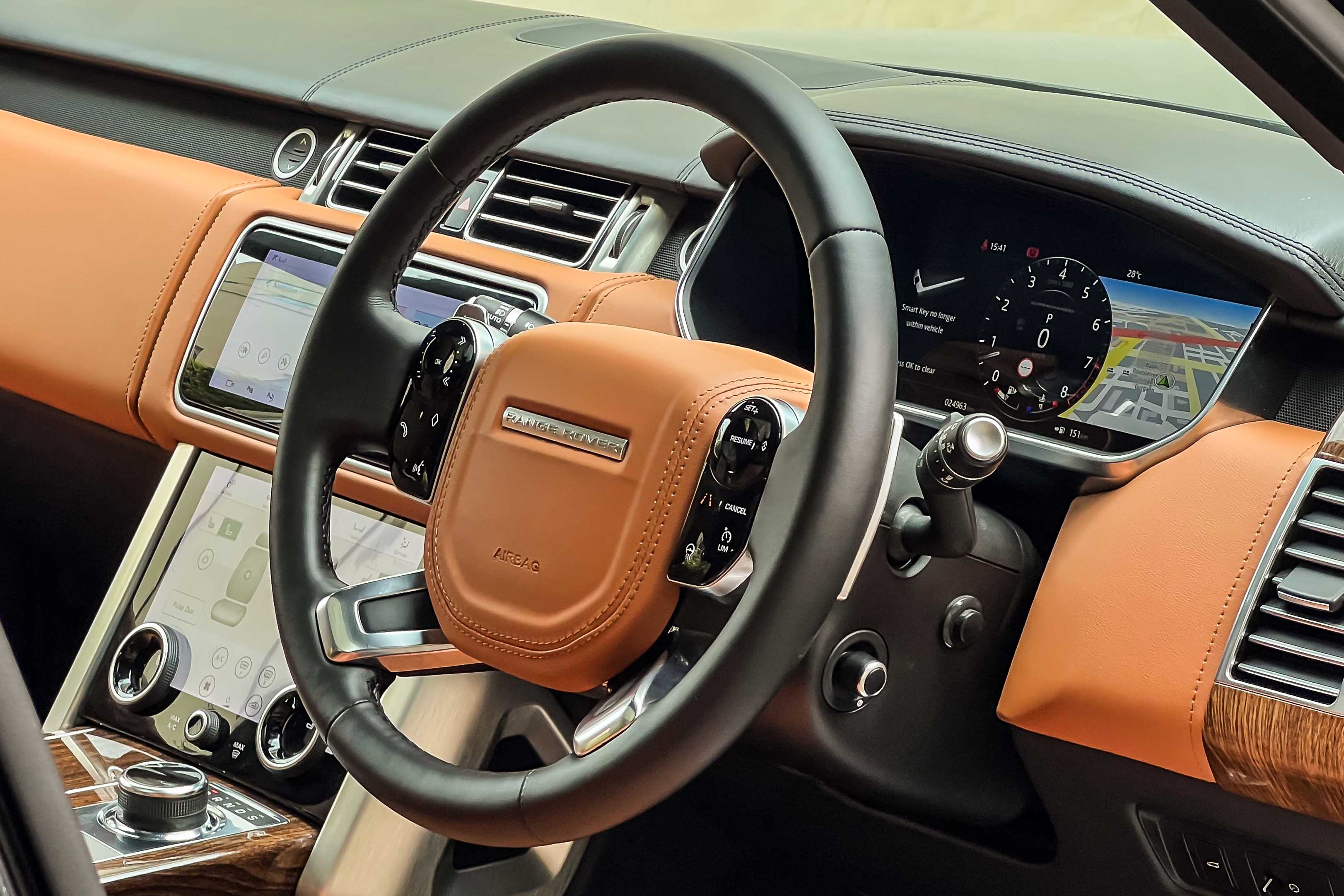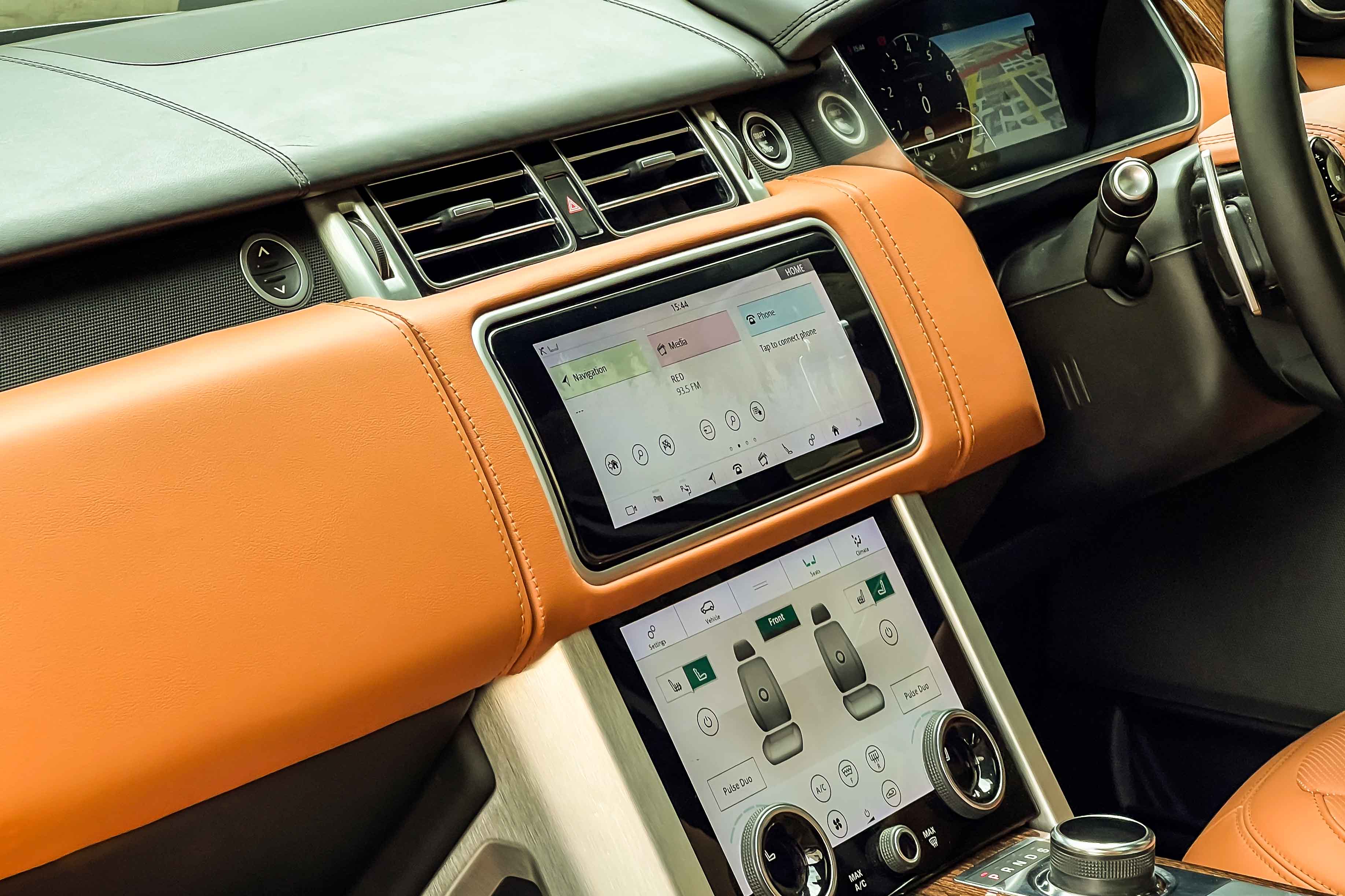 Inside, the Range Rover Vogue Autobiography interior is designed to deliver a true first-class chauffeur-driven experience. Premium leather upholstery, handcrafted finishes, rear executive seating, ambient lighting and advanced infotainment technology create one of the most luxurious cabins available in a full-size luxury SUV.