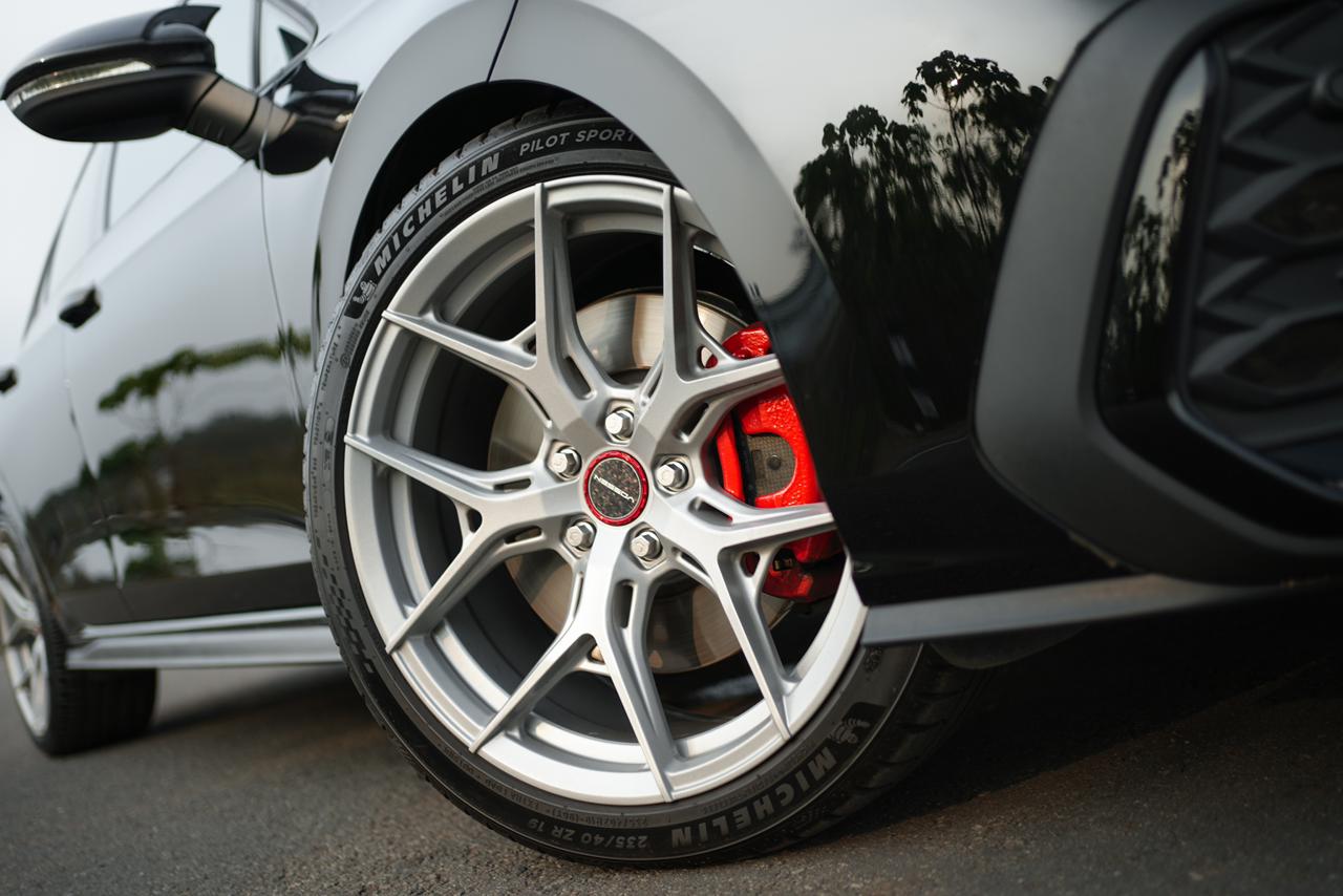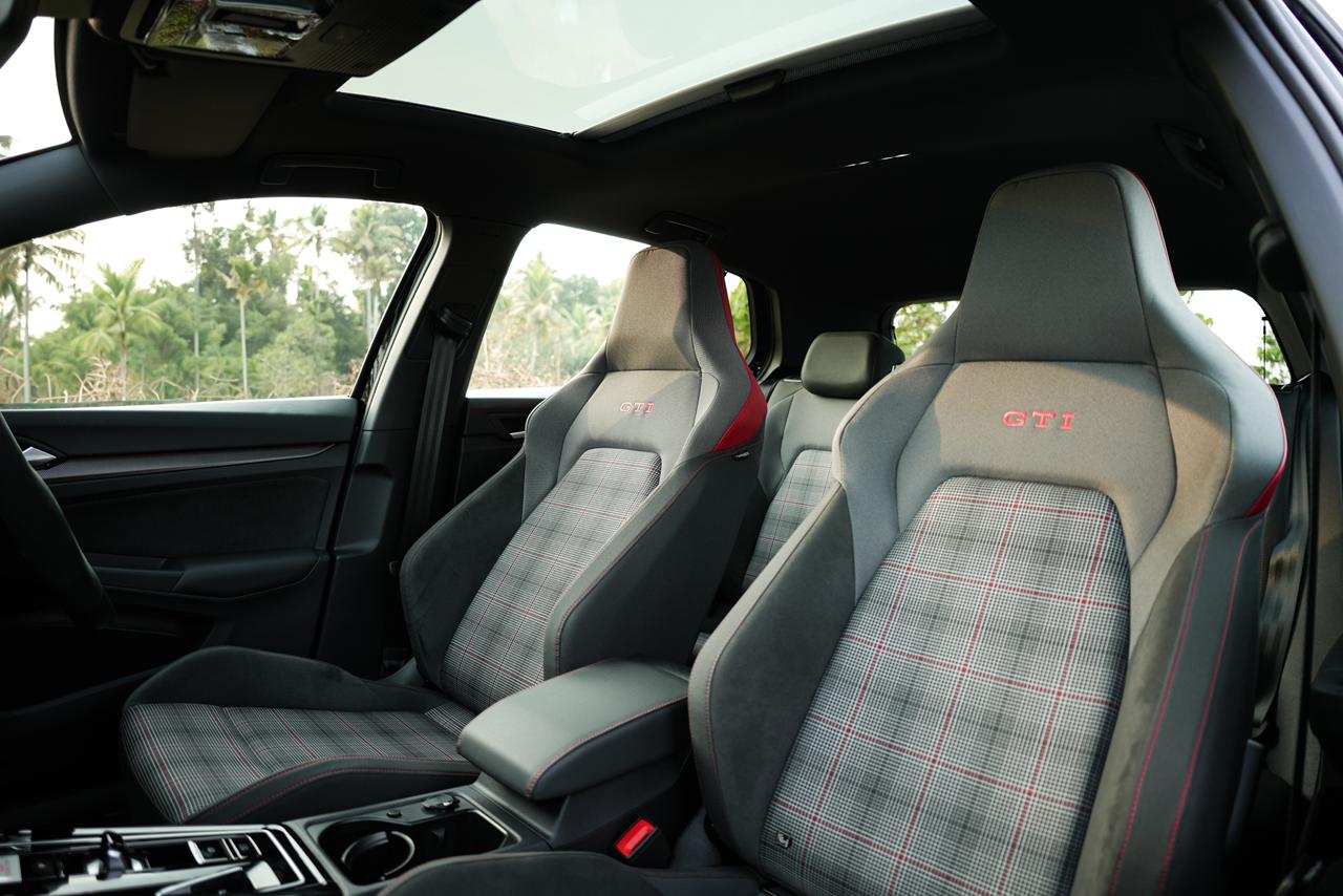 The 2025 Volkswagen Golf GTI stands out with its sharp design, sporty stance and GTI-specific styling cues. Its aggressive front fascia, signature detailing and compact proportions give this car a strong road presence, clearly positioning it as a performance car for sale India with global enthusiast appeal.